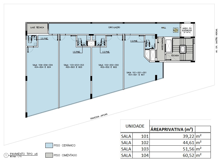 Todos os andares contam com um pré divisão de quatro salas no sistema de drywall, possibilitando qualquer alteração afim de atender a otimização dos ambientes de seu projeto.